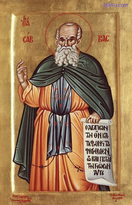 Святой Савва , озаривший палестинскую пустыню своим житием, подобным ангельскому, родился в небольшом городке Муталаска, в Каппадокии, в 439 году. Уже в восьмилетнем возрасте он, осознав суетность мира сего и исполненный пламенной любви к Богу, вступил в расположенный неподалеку Флавианский монастырь. Несмотря на все старания его семьи вернуть мальчика назад, тот остался непреклонным в своем решении и быстро приобщился ко всем монашеским послушаниям, в особенности к воздержанию и чтению Псалтири наизусть.