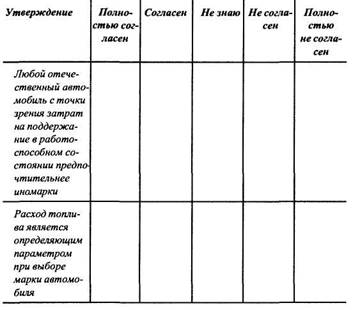 Опросный лист, приведенный в табл. 5.1, является простым, и кажется,