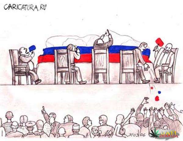При вступлении в должность наши чиновники кладут на конституцию руку, а после вступления кладут на нее все остальное.