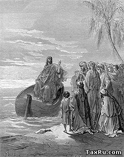 Однажды, когда народ теснился к Нему, чтобы слышать слово Божие, а Он стоял у озера Геннисаретского, увидел Он две лодки, стоящие на озере; а рыболовы, выйдя из них, вымывали сети. Войдя в одну лодку, которая была Симонова, Он просил его отплыть несколько от берега и, сев, учил народ из лодки. Когда же перестал учить, сказал Симону: отплыви на глубину и закиньте сети свои для лова. Симон сказал Ему в ответ: Наставник! мы трудились всю ночь и ничего не поймали, но по слову Твоему закину сеть. Сделав это, они поймали великое множество рыбы, и даже сеть у них прорывалась. И дали знак товарищам, находившимся на другой лодке, чтобы пришли помочь им; и пришли, и наполнили обе лодки, так что они начинали тонуть. Увидев это, Симон Петр припал к коленям Иисуса и сказал: выйди от меня, Господи! потому что я челове