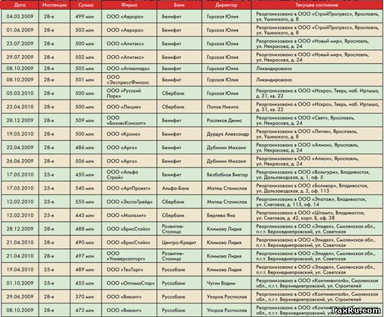 всех компаний, возместивших НДС с 2009 по 2010 год в Москве. В списке —