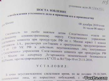 результатам рассмотрения материалов от 08.12.2010 было возбуждено