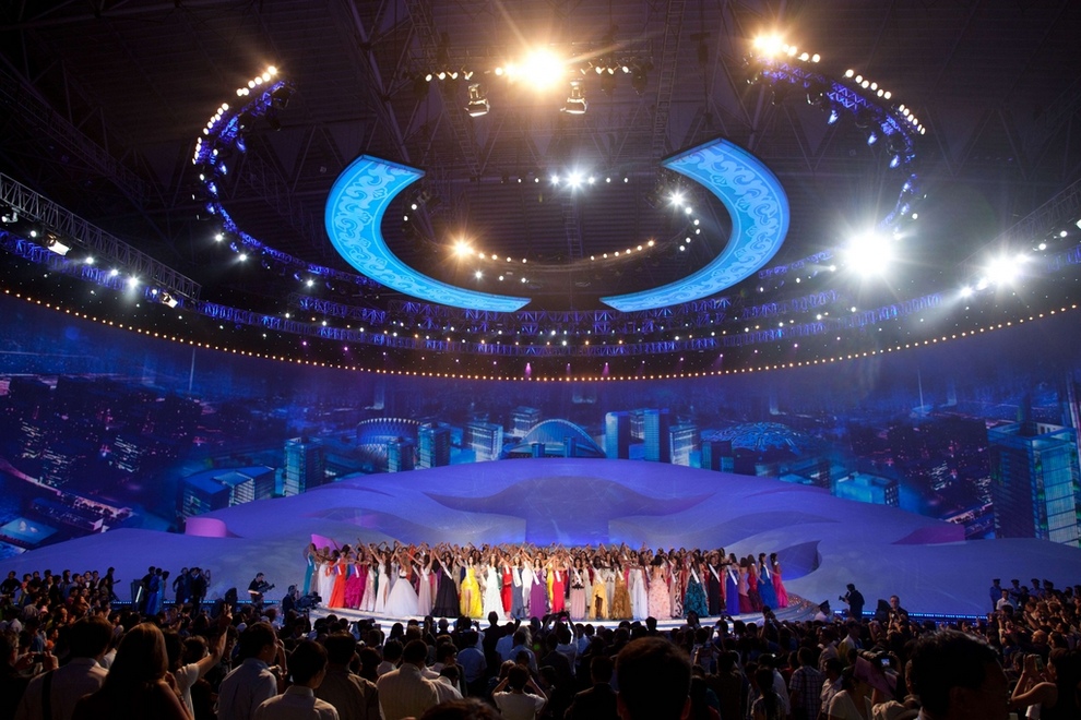конкурса «Мисс Мира 2012» поют песню после окончания коронации, Ордос,