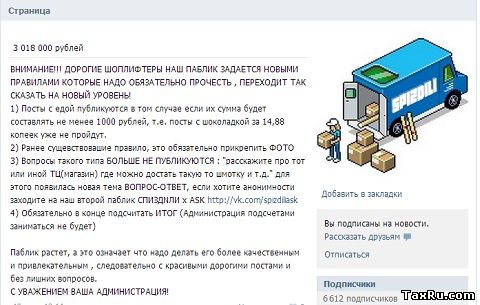 В сообществе есть такие обсуждения, как «КУПЛЮ х ПРОДАМ», «ДЕЛИМСЯ ОПЫТОМ», «ТРОЛЛИНГ ОХРАННИКОВ», «ТИПИЧНЫЕ ОШИБКИ» и так далее. На момент написания новости в сообществе состояли 6612 человек. Кроме того, по подсчетам самих шоплифтеров, они на тот момент нанесли торговым точкам ущерб больше, чем на три миллиона рублей — показатель регулярно обновляется в шапке сообщества.