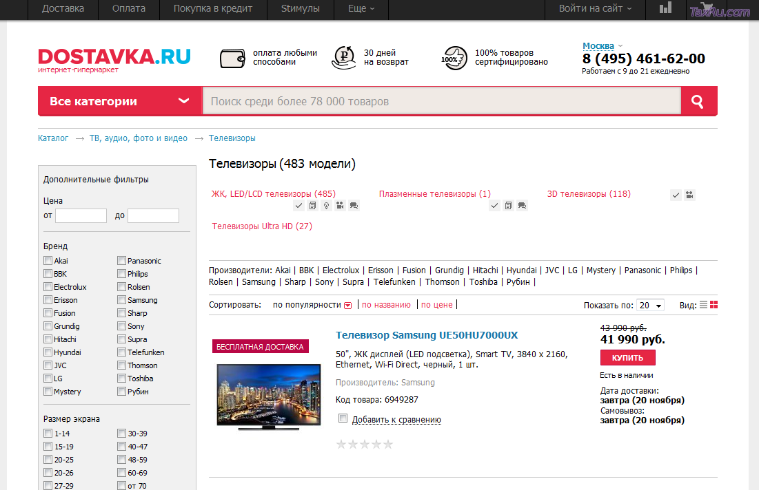 За примерами далеко ходить не надо. Интернет–магазин http://www.dostavka.ru/ является лучшим среди онлайн–продавцов. Если появилась идея купить телевизор или смеситель для ванны, то лучше обратиться именно туда. Доставка по всей России не заставит долго ждать. А гарантия при покупке избавит от лишних переживаний, а именно это и важно для каждого.