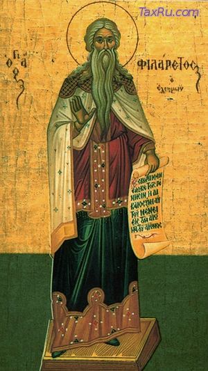 Около 780 года, в царствование императрицы Ирины, матери юного императора Константина VI, в пафлагонском городе Амнии жил богатый земледелец по имени Филарет. Бог в изобилии даровал ему всякого рода имение: поля, виноградники, стада скота; в его обширном хозяйстве трудилось множество работников и слуг. Будучи уже в пре