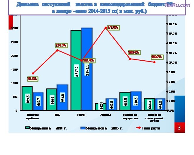В январе-июле 2015 года в консолидированный бюджет Российской Федерации поступило налогов, сборов и иных обязательных платежей (без учета поступлений единого социального налога) 6 313,8 млн. рублей или 105,5% к аналогичному периоду 2014 года.