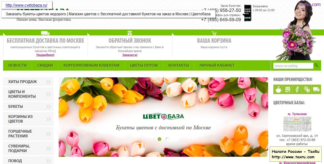 Интернет-магазин "Цветобаза" занимается продажами роз, тюльпанов, лилий и орхидей, а также декоративных домашних растений и праздничных сувениров. Здесь можно купить цветы с доставкой по москве недорого, а также заказать оформление корпоративных мероприятий и офисных помещений сезонными букетами и горшечными растениями.