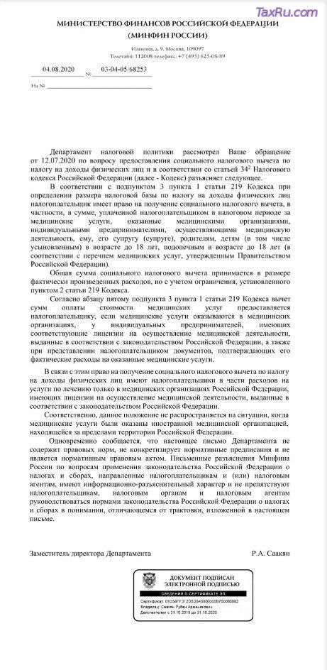 Соответственно, данное положение не распространяется на ситуации, когда медицинские услуги были оказаны иностранной медицинской организацией, находящейся за пределами территории РФ.