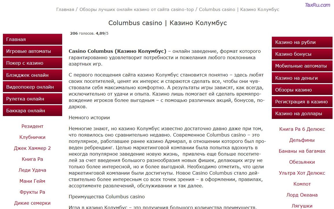 Посетив виртуальный игровой клуб Казино Колумбус, любитель азартных игр всегда найдёт для себя интересный автомат. На страницах сайта разместились аппараты различной тематики, которые смогут удовлетворить любые предпочтения посетителей.