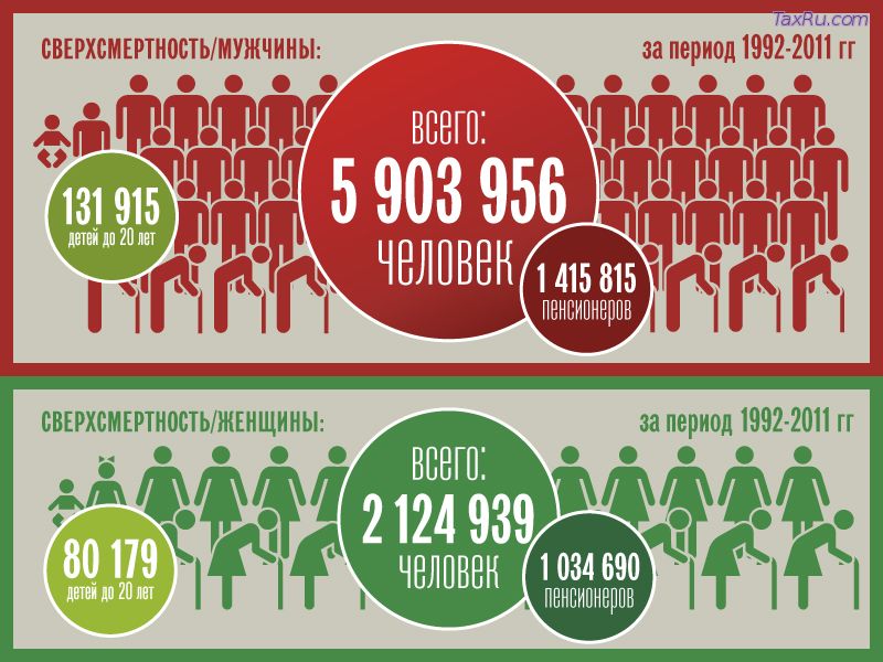 Как я выяснил ранее, после 1991 года в России случилась немалая сверхсмертность среди людей вполне работоспособного и даже юного возраста. На основании этих данных я смог подсчитать сколько людей ускоренно покинуло этот мир по причине социально-экономической деятельности либералов. Механика подсчетов была следующая: используя Возрастные коэффициенты смертности Ростата я выяснил разницу в промилле относительно показателей 1990 года.