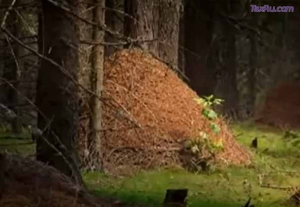 Перед нами здоровое гнездо рыжего лесного муравья (Formica rufa). Для данного вида характерен купольный муравейник, верхний слой которого состоит из десятисантиметрового слоя палочек, иголочек, сухих листьев, камешков. Гнездовой материал муравьи постоянно перемешивают, чтобы муравейник не начал гнить - это своего рода принудительная вентиляция. Высота нашего муравейника - 56 сантиметров, диаметр - 98 сантиметров. Купол имеет 11 отверстий.