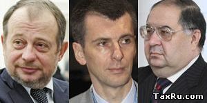 Первая тройка миллиардеров выглядит так (слева направо): Владимир Лисин (более 28 миллиардов долларов), Михаил Прохоров (почти 23 миллиарда), Алишер Усманов (чуть меньше 20 миллиардов).