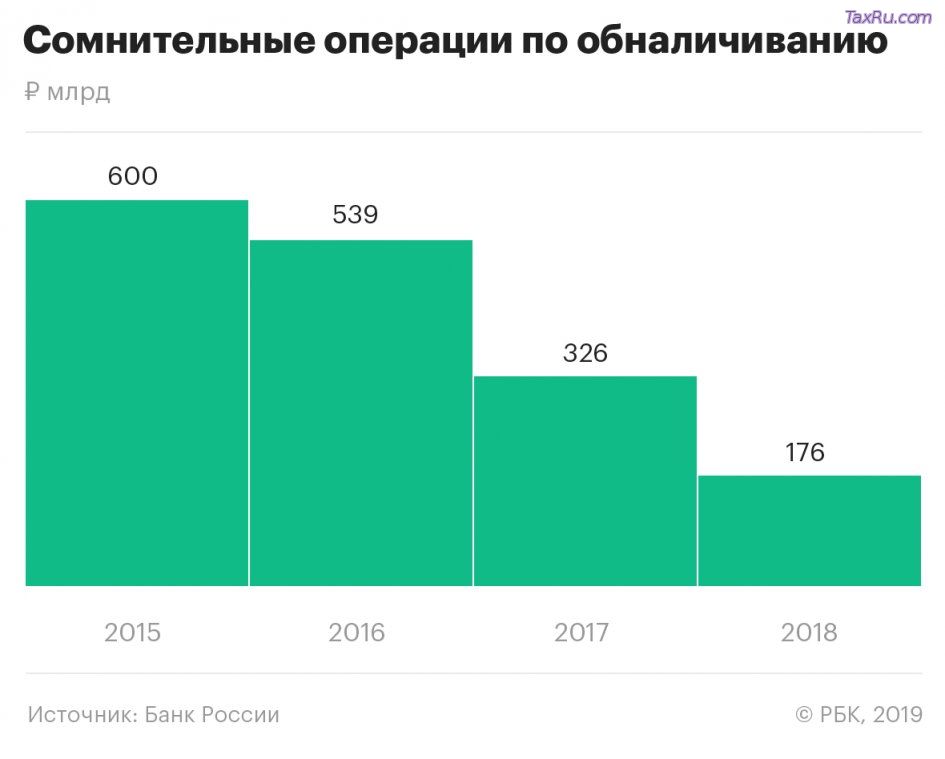 С тех пор объемы сомнительных операций последовательно снижаются. Если по итогам 2015 года ЦБ оценивал рынок обналичивания в 600 млрд руб., то в 2017 году — уже в 326 млрд, а в 2018 году — в 176 млрд руб.