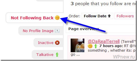 10. Во вкладке "Talkative” Вы увидите список "гиперактивных” (более 5 твитов в день) пользователей Twitter, а в "Quiet” Вы увидите тех, кто пишет меньше 1-го твита в день. Обычно я в эти вкладки не захожу и пользователей там не трогаю.