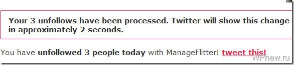 7. И Вы увидите уведомление, что отписались от столько-то людей: