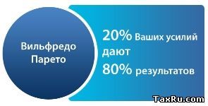 "Принцип Парето" (Вильфредо Парето-Vilfredo Pareto [15 июля 1848, Париж — 20 августа 1923]): примерно 20% усилий и времени достаточно, чтобы получить 80% результата. Находя возможности принять «реальный» результат вместо «идеального», Вы можете сэкономить значительные ресурсы для других дел. В чем суть?