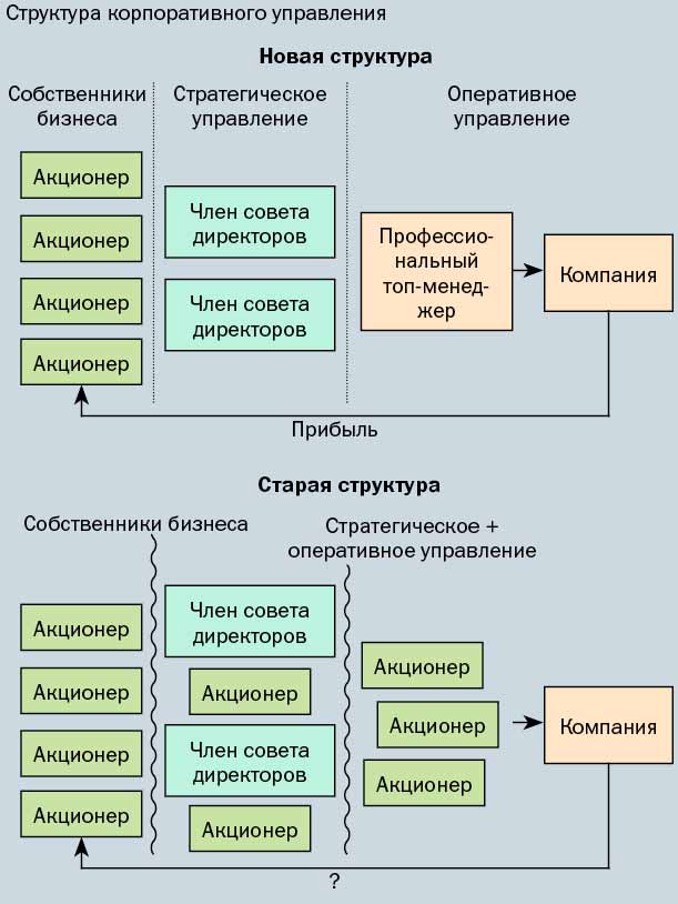 На законодательном уровне были приняты нормативные акты, призванные защитить инвесторов: акт Сарбейнса-Оксли в США, 8-я директива ЕС, а также страновые кодексы корпоративного поведения, из которых позаимствован и включен в требования листинга основных торговых площадок целый ряд положений. При этом зачастую в частных компаниях советы директоров состояли из топ-менеджеров этих организаций, а иногда они же были и собственниками бизнеса. Фактически ни о каком разделении полномочий речи быть не могло. Да и аргументы, звучавшие в тот период, казались большинству весьма вескими: кто лучше собственника может блюсти интересы бизнеса? кто, если не собственник (он же руководитель), возьмет на себя риски, связанные с принятием ключевых для этого бизнеса решений?