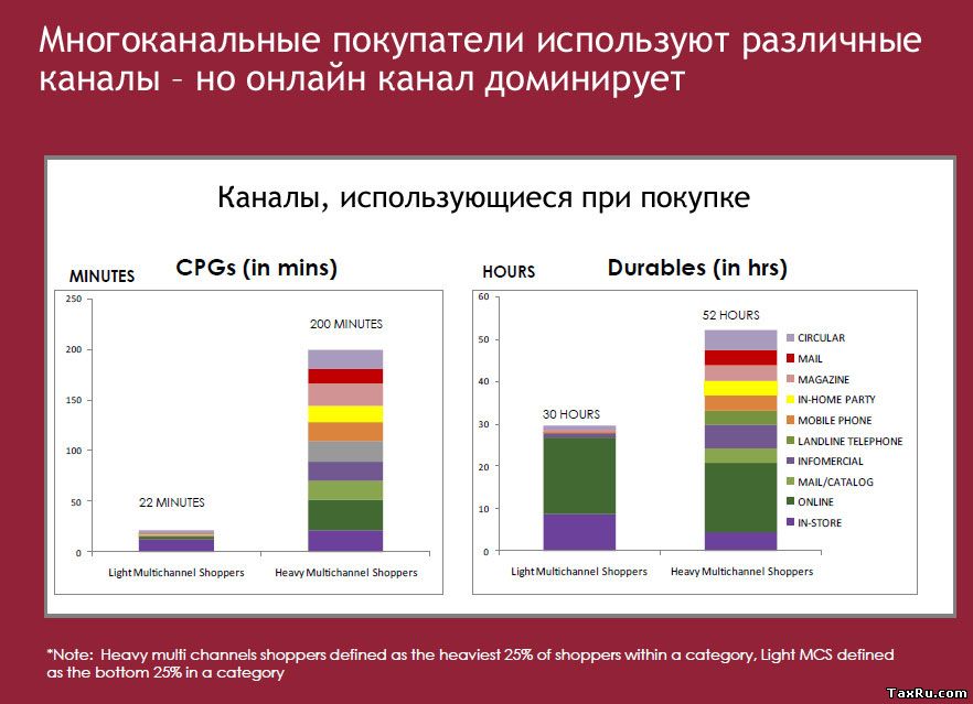 При выборе каналов многоканальные покупатели чаще всего руководствуются двумя критериями: риск и отдача. При этом: чем больше каналов используется, тем выше вероятность совершения покупки.