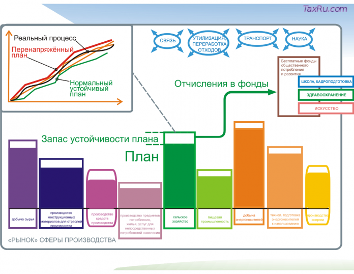 Кроме того, что план изначально должен быть обеспечен резервом производственных мощностей во всех отраслях, научно-технический и организационно-технологический прогресс, также идёт в запас устойчивости плана.